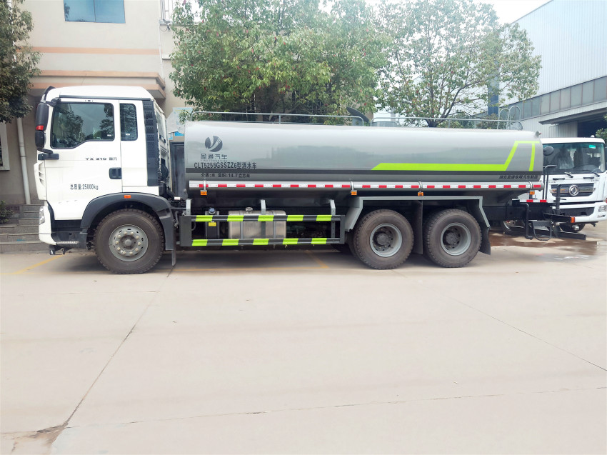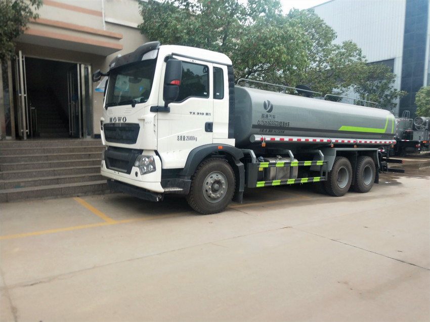 重汽20噸灑水車罐體為橢圓形或方形,采用武鋼優(yōu)質(zhì)碳鋼板制成,罐體倉內(nèi)1.5米一道隔板,具有防波防蕩作用,還可按用戶要求進行專業(yè)的防腐防銹處理,罐體外可用發(fā)泡或巖棉加裝保溫層起保溫功能?蛇x裝藥盤,藥泵、高壓噴藥設(shè)備、非車帶泵動力等.、罐內(nèi)防腐防銹、多方位進出水接頭、氣動閥、警燈等先進設(shè)施,以滿足不同用戶需求。