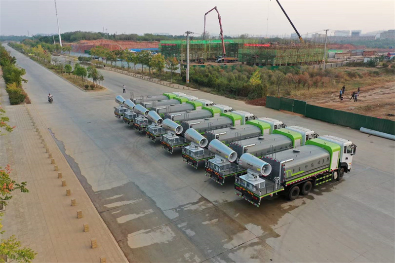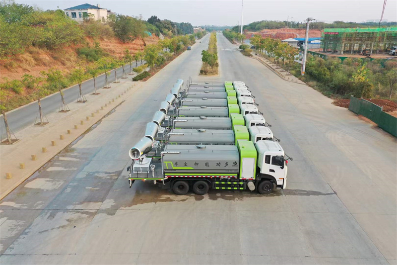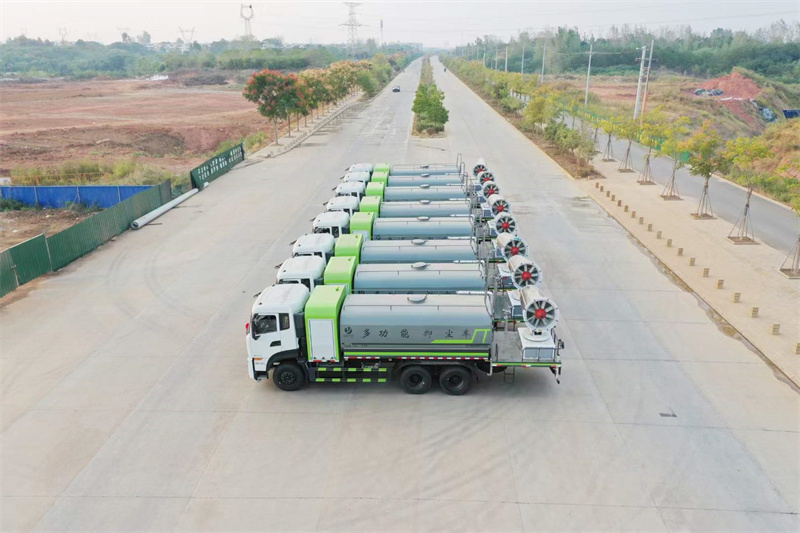 一. 產(chǎn)品簡(jiǎn)述 抑塵車又稱為綠化噴灑車、多功能灑水車、園林綠化灑水車。抑 塵車適合于各種路面沖洗,樹木、綠化帶、草坪綠化,道路、廠礦企業(yè) 施工建設(shè),高空建筑沖洗。抑塵也可以作為運(yùn)水車使用,最常見的車 型有綠化噴灑車、多功能灑水車、綠化灑水車幾大類。 我公司產(chǎn)品標(biāo)配前噴(鴨嘴)、后沖、后灑、側(cè)噴、后置式工作 平臺(tái),平臺(tái)上配置綠化水炮(可 360°旋轉(zhuǎn),既可以調(diào)成柱狀,也可 以調(diào)成霧狀,更可以調(diào)成直沖狀、大雨、中雨、小雨、毛毛雨),配 備優(yōu)質(zhì)大功率專用灑水泵(可自吸自排,可從河里或池塘抽水到罐體), 取力器,雜物過濾網(wǎng),消防接口,自流球閥系統(tǒng)、取力器、球閥、濾網(wǎng) 均為國(guó)家標(biāo)準(zhǔn)產(chǎn)品,主管道加粗,法蘭墊、法蘭盤加厚,大通徑球閥。 整體具備性能優(yōu)良安全可靠、效率高、流量大、維修方便等特點(diǎn)。