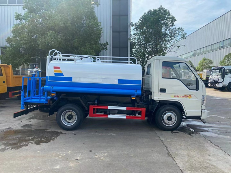 3噸灑水車具體配置:底盤部分,采用福田原廠灑水車底盤,全柴55匹馬力發(fā)動機,2600軸距,萬里揚5檔變速箱,600-16輪胎,國三排放標準,,專用部分,罐體采用優(yōu)質(zhì)碳鋼材質(zhì)制作,帶兩個前沖噴頭、兩個后灑噴頭、兩個側噴、后工作平臺、尾部安裝綠化炮,綠化炮可以自行調(diào)節(jié)(柱狀,大雨,中雨,小雨,霧狀),帶專用灑水泵可以實現(xiàn)自吸自排,帶消防接口,兩根輸水管,此車為出口車型