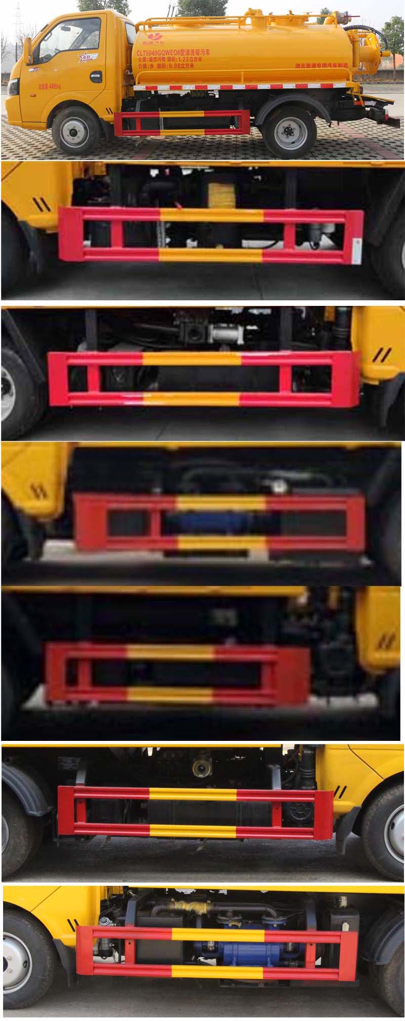 備注 | 該車用于下水道排污及疏通,專用裝置:罐體及清洗吸污裝置;罐體外形尺寸(長(zhǎng)×長(zhǎng)軸×短軸)(mm):2800×1550×1000,罐體前段為清水罐(長(zhǎng)1590mm,其中前端下部1100mm用于安裝高壓泵);后段為污水罐(長(zhǎng)1210mm);污水罐總?cè)萘?1.29立方米,污水罐有效容積:1.23立方米,介質(zhì):液態(tài)污物,密度800千克/立方米;清水罐總?cè)萘?1.03立方米,清水罐有效容積:0.98立方米,介質(zhì):水,密度1000千克/立方米,清水罐和污水罐為獨(dú)立罐體,清洗功能時(shí)用清水罐,吸污功能時(shí)用污水罐,污水罐和清水罐不可同時(shí)滿載,兩罐不能同時(shí)滿載使用;ABS型號(hào)/廠家:APG3550500A/浙江亞太機(jī)電股份有限公司;選裝ABS廠家及型號(hào):襄陽(yáng)東風(fēng)隆誠(chéng)機(jī)械有限責(zé)任公司/ABS/ASR-12V-4S/4M.側(cè)、后防護(hù)材料均為:Q235碳鋼,連接方式均為:螺栓連接,后部防護(hù)截面尺寸(mm):100×50,后部防護(hù)離地高度(mm):360.僅采用底盤2800mm軸距改裝.選裝油箱及電瓶位置。隨底盤選裝駕駛室。 | ||
