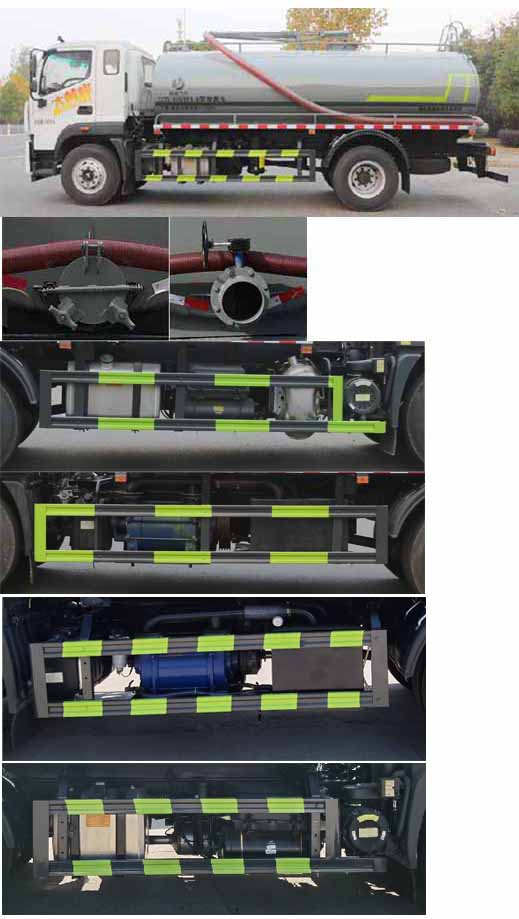 備注 | 主要專用裝置:罐體及吸糞裝置總成,主要用于抽排運污水、糞便、泥漿等液態(tài)污物;罐體總?cè)萘?12.34立方米;罐體有效容積:11.73立方米;罐體外形尺寸(長×長軸×短軸)(mm):5200×2350×1500,4400×2350×1600;側(cè)、后防護材料均為:Q235碳鋼,連接方式均為:螺栓連接,后部防護截面尺寸(mm):120×50,后部防護離地高度(mm):470;ABS系統(tǒng)型號:ABS-VI.E;生產(chǎn)企業(yè):廣州瑞立科密汽車電子股份有限公司.ABS系統(tǒng)型號:ABS-E;生產(chǎn)企業(yè):威伯科汽車控制系統(tǒng)(中國)有限公司,ABS系統(tǒng)型號:3550D-1010;生產(chǎn)企業(yè):東科克諾爾商用車制動系統(tǒng)(十堰)有限公司.采用4500,3950mm軸距.選裝側(cè)部及后部出口樣式;隨底盤選裝限速裝置,限速90km/h.選裝尿素罐位置,選裝電瓶位置。 | ||