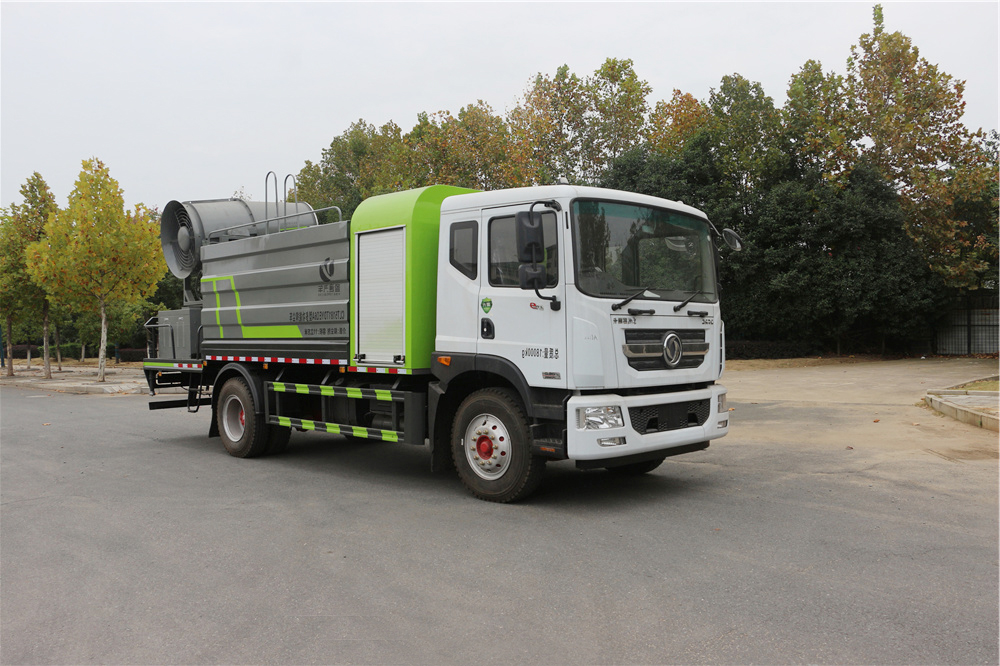 霧炮車(chē)專用功能配置:罐體實(shí)際容積約為11-12立方米,公告有效參數(shù)11立方米、采用武鋼優(yōu)質(zhì)碳鋼板卷壓成型。配備專用灑水泵,前噴后灑、左右對(duì)沖、側(cè)噴、后工作平臺(tái)及灑水高壓炮。灑水泵自吸高度為6米左右,整車(chē)灑水寬度14米左右,后工作平臺(tái)水炮可調(diào)成:直沖狀、大雨、中雨、霧狀,有效射程≥28米,后主管道帶一個(gè)一寸澆花接口、整車(chē)帶接頭、水位計(jì),自流閥及自吸功能。附送2根3米水管,1個(gè)爬梯,兩側(cè)及后保險(xiǎn)杠。