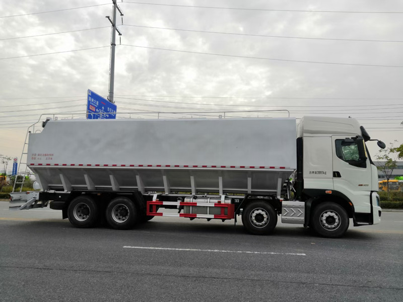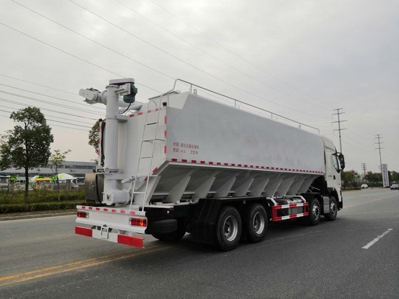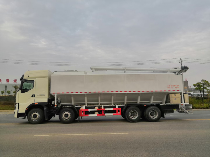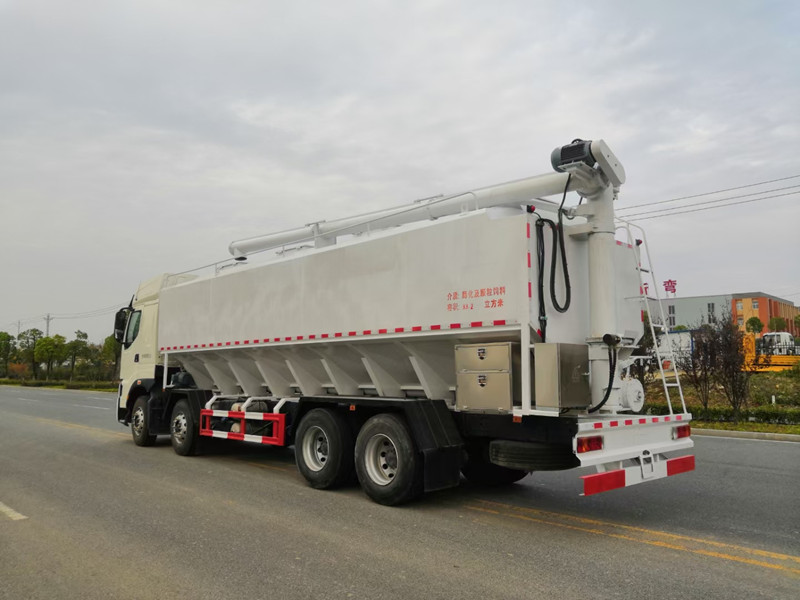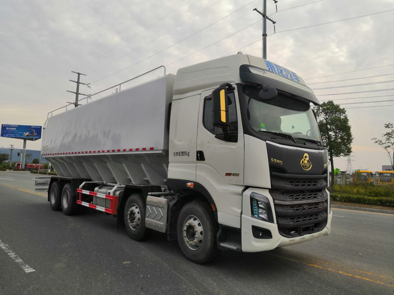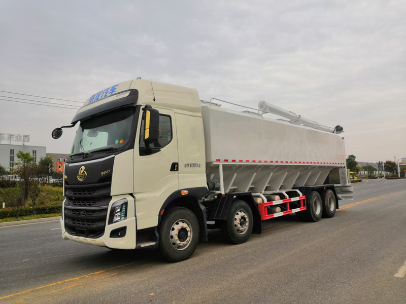柳汽乘龍前四后八散裝飼料運輸車/40方養(yǎng)殖場飼料配送車整車型號:XBZ5310ZSLL6,柳汽H7駕駛室,玉柴460馬力國六發(fā)動機,法士特12檔鋁合金變速箱,5.5T雙前橋,440雙后橋,12R22.5,全氣囊懸浮駕駛室,電動玻璃、LCD液晶儀表、自動空調、真皮多功能方向盤、定速巡航、ABS、中控鎖、自動調整臂。整車尺寸:12000×2500×3995mm。/40方散裝飼料車
