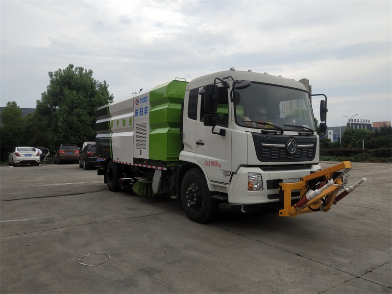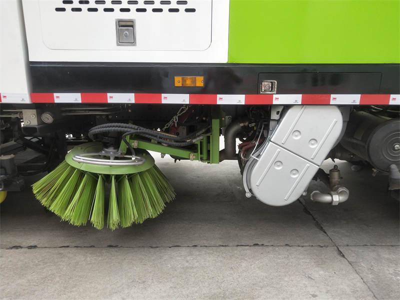 洗掃車采用中置兩刷盤,中置寬吸盤,配上具有防撞避障功能的V型高壓沖水架,組成一條大于3.5米的沖洗清掃帶。采用康明斯EQ6BT5.9-118型副發(fā)動機現(xiàn)階段亦有采用電動作為動力的驅動裝置橫置在車架中部,具有氣動離合裝置控制的抽吸風機布置在動力倉的左側。采用不銹鋼材料加工而成的水箱與垃圾箱均為采用方形瓦棱結構。水箱分為兩部位,一部分為前置獨立水箱,裝配在動力倉的前部;另一部分為設置在垃圾箱前部的水箱,可隨垃圾箱與動力倉罩同時升降。具有舉升功能的垃圾箱內(nèi)裝配有高壓沖洗噴頭,使得卸料更為輕松、干凈徹底。能夠隨垃圾箱體舉升的動力倉罩可使動力系統(tǒng)的維修保養(yǎng)極為便利。采用歐美地區(qū)的名優(yōu)配套部件,使得整車性能更為優(yōu)良,工作更為可靠。