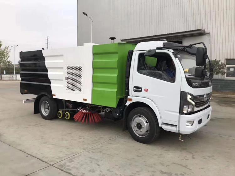 該洗掃車采用東風(fēng)大多利卡二類底盤改裝,加裝副發(fā)動(dòng)機(jī)、風(fēng)機(jī)、清水箱、垃圾箱、左右立掃、掃盤降塵系統(tǒng)、左右高壓側(cè)噴高、吸盤內(nèi)置高壓主噴桿、氣動(dòng)系統(tǒng)、液壓系統(tǒng)、專用裝置電控系統(tǒng)和副車架等改裝而成。
