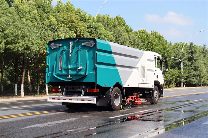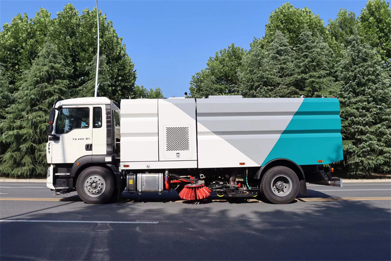9、掃路車,清掃車,洗掃車,除塵過濾系統(tǒng)設(shè)置三級氣力輸送除塵裝置。濾筒式過濾系統(tǒng)采用脈沖式除塵。除塵系統(tǒng)中設(shè)有氣壓開關(guān)進行壓差控制實現(xiàn)脈沖自動除塵;