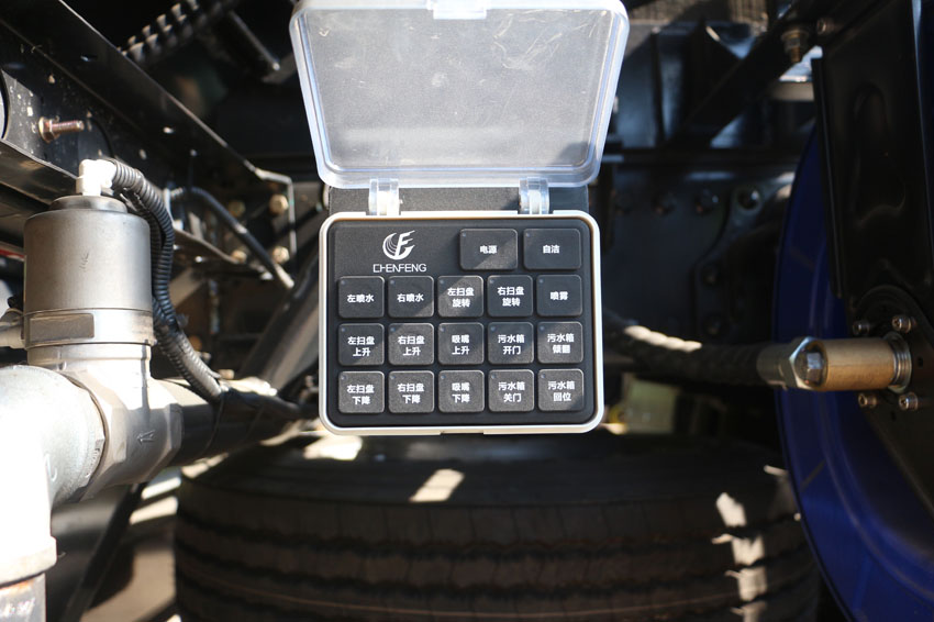 帶2個中置掃盤,康明斯170馬力副發(fā)動機;大力馬達;德國高壓水泵(前沖/側噴/中噴/后噴霧(不銹鋼噴嘴)/側沖洗水槍/垃圾箱自潔裝置);萬向高壓路沿清洗;臺灣液壓閥組;威龍低壓泵(前沖);4mm不銹鋼垃圾箱;不銹鋼水箱;不銹鋼高壓管路;雙層不銹鋼吸塵筒;德國控制器;美國傳感器;尾部箭頭燈;機油、垃圾箱、水箱均帶防溢或低位報警裝置;倒車及洗掃狀態(tài)室內監(jiān)視器;倒車防撞自動保護裝置;檢修安全保護裝置;掃刷臂轉動機構使用高新耐磨工程隔套,免打黃油;20m高壓沖洗卷盤。集成式運動控制器,一鍵電腦控制。