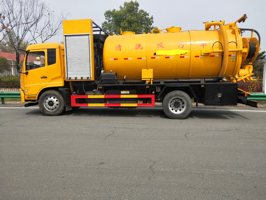 吸污車專用部分由取力器、傳動軸、真空吸污泵、壓力罐體、液壓部分,管網(wǎng)系統(tǒng)、真空壓力表、視糞窗、洗手裝置等組成,隨車配置大功率真空吸污泵和優(yōu)質(zhì)液壓系統(tǒng),罐體封頭一次壓鑄成型、罐體可后開、雙頂自卸。罐內(nèi)污物可通過后蓋直接傾倒,具有真空度高(比吸糞車的吸力更大)、噸位大、效率高、用途更廣泛的特點