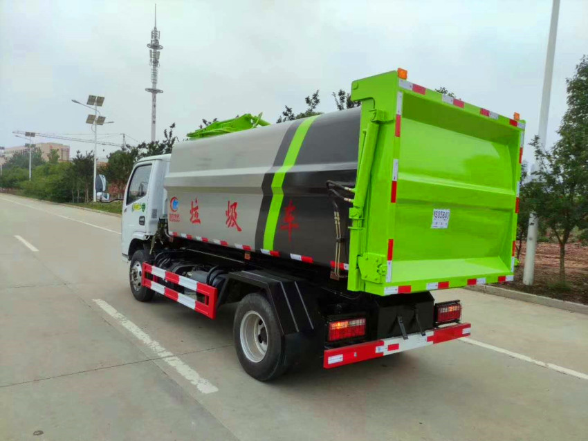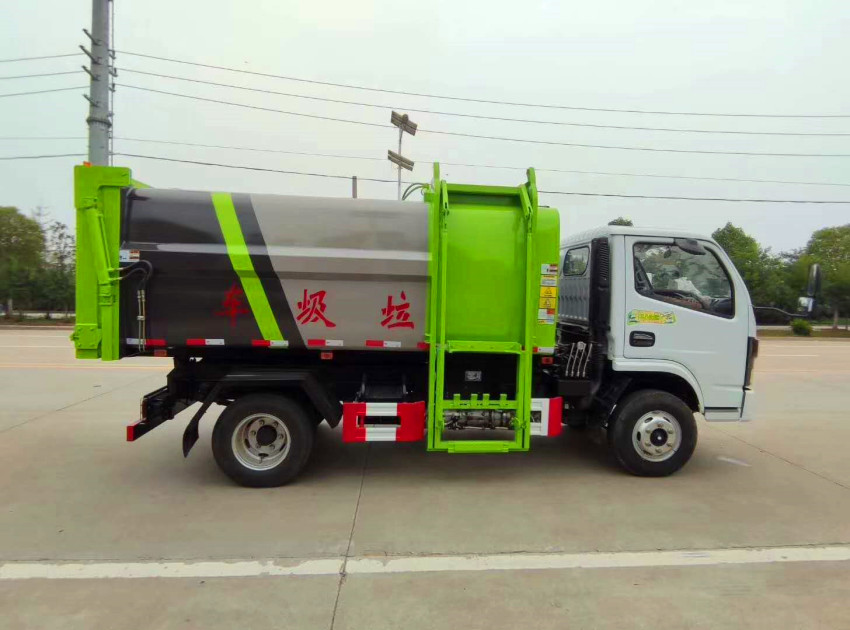 自卸方式為后傾卸。專(zhuān)用裝置:掛桶機(jī)構(gòu),主要用于城市垃圾集中收集轉(zhuǎn)運(yùn)。