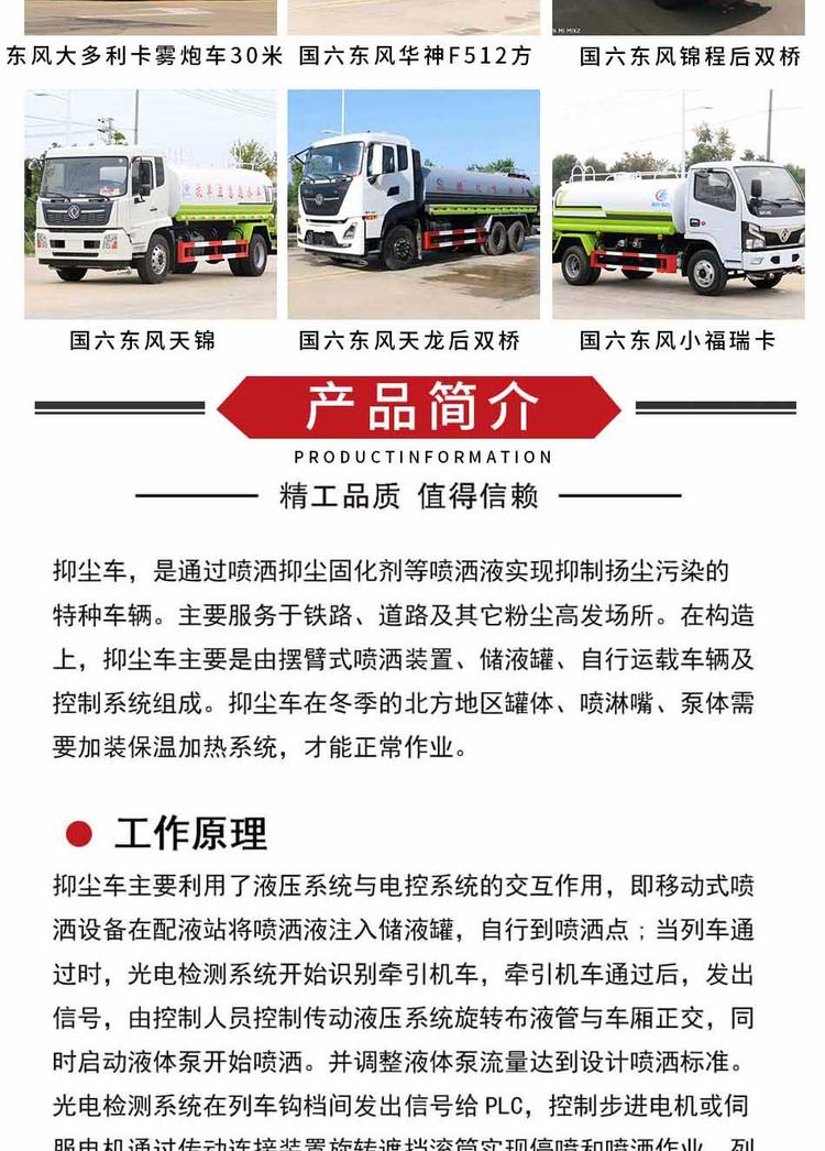 4、霧化噴嘴:產(chǎn)品罐體后補安裝有萬向霧化噴嘴,噴嘴角度可以調(diào)節(jié),主要用于公路、工廠抑塵及降塵。