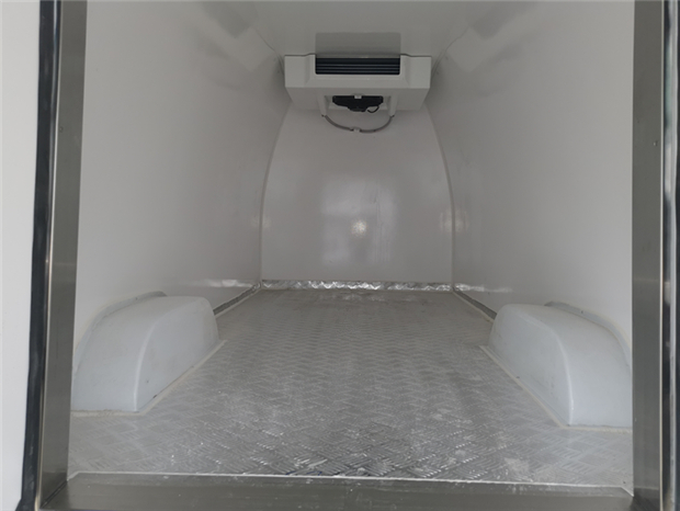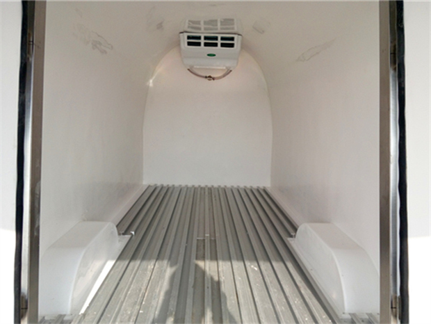 福田G7冷藏車車廂配置為:廂體采用內(nèi)外優(yōu)質(zhì)玻璃鋼板,內(nèi)膽圓弧式廂體,地板為鋁花紋板,底板和四周廂板加裝通風(fēng)槽,不銹鋼門框,鎖件。