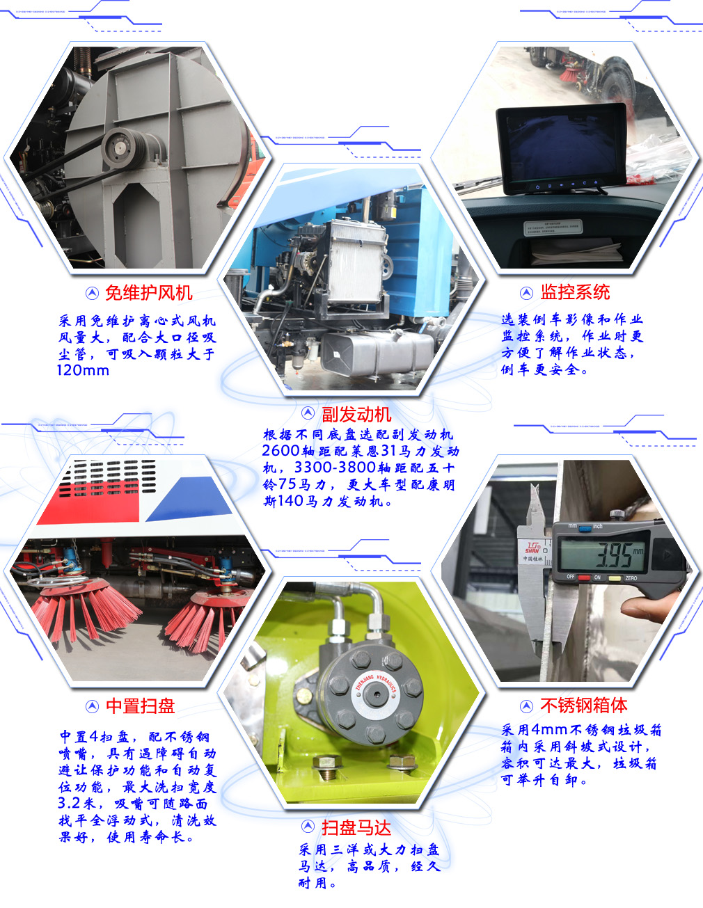 此車為道路洗掃專用車輛,專用裝置為掃刷.防護(hù)裝置均采用Q235A材質(zhì),均采用焊接連接, 專用裝置掃刷代替部分側(cè)面防護(hù),掃刷離地高為(mm):180,后下部防護(hù)與車架焊接連接, 后下部防護(hù)尺寸:50×150(mm),離地面高度420mm. ABS系統(tǒng)型號(hào)為XH-KQ4S4M-E01, 生產(chǎn)企業(yè)為廣州市西合汽車電子裝備有限公司;型號(hào)為CM4XL-4S/4M, 生產(chǎn)企業(yè)為廣州瑞立科密汽車電子股份有限公司.整車長/軸距對應(yīng)關(guān)系為(mm):7590/4200,7890/4500, 8090/4700,8590/5200,8990/5600,4700/8310,5200/8680.選裝不同的外觀圖片.隨底盤選裝駕駛室. |