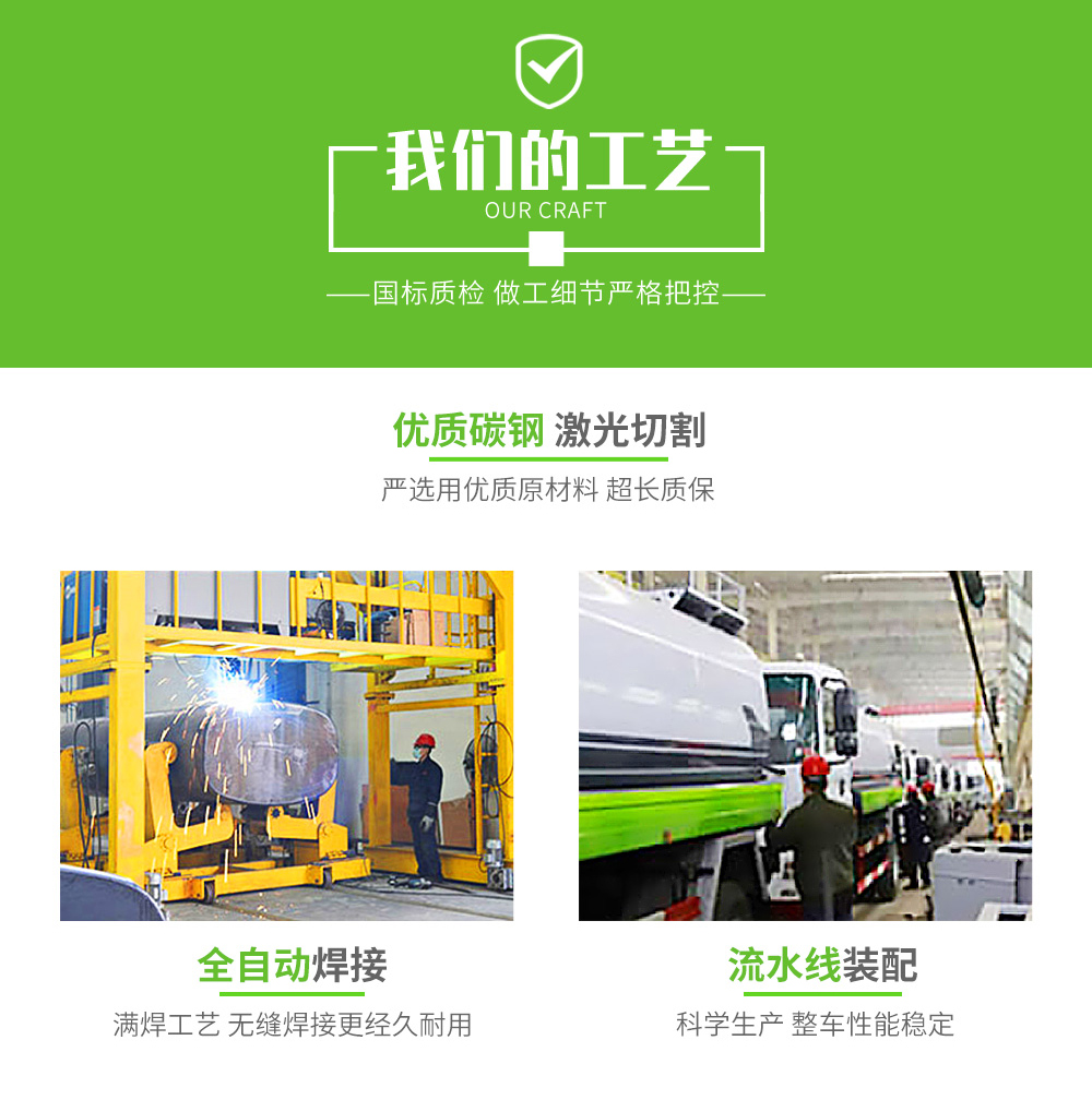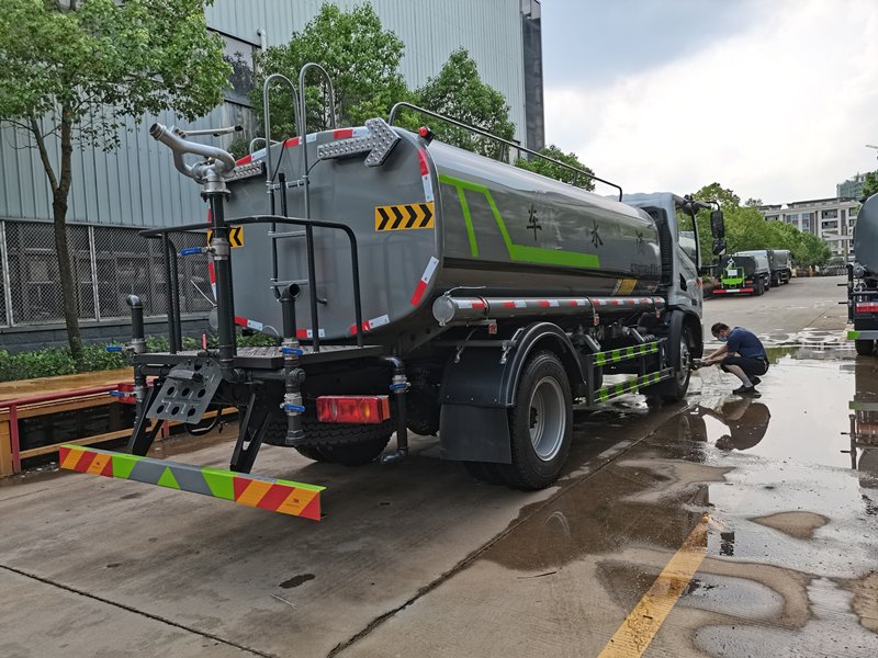專用功能配置:罐體實際容積約為10立方米,公告有效參數(shù)8.1立方米、采用武鋼優(yōu)質(zhì)碳鋼板卷壓成型。配備專用灑水泵,自吸自排,前噴后灑、側(cè)噴、后工作平臺及灑水高壓炮。灑水泵自吸高度為6米左右,整車灑水寬度14米左右,后工作平臺水炮上下左右360旋轉(zhuǎn)可調(diào)成:直沖狀、大雨、中雨、小雨、霧狀,有效射程≥28米,整車帶接頭、水位計,自流閥。后工作平臺主管道有一個一寸的澆花接口,附送2根3米水管,1個爬梯,兩側(cè)及后保險杠。 |