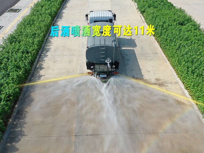 灑水車專用功能配置:罐體實際容積約為9.35立方米,(罐體有效參數(shù)7.56立方米、額定載質(zhì)量7200kg、)采用武鋼優(yōu)質(zhì)碳鋼板卷壓成型。配備專用灑水泵,自吸自排,前噴后灑、側(cè)噴、后工作平臺及灑水高壓炮。灑水泵自吸高度為6米左右,整車灑水寬度14米左右,后工作平臺水炮可調(diào)成:直沖狀、大雨、中雨、小雨、毛毛雨,有效射程≥28米,整車帶接頭、水位計,自流閥。后工作平臺主管路帶1寸澆花接口,附送2根3米水管,1個爬梯,兩側(cè)及后保險杠。 |