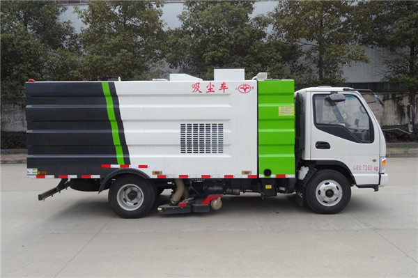 該吸塵車是采用江淮型國五二類原廠汽車底盤改裝,加裝副發(fā)動機、風(fēng)機、清水箱、垃圾箱、中置吸盤,工作視頻探頭,自動脈沖清理功能,液壓系統(tǒng)、專用裝置電控系統(tǒng)和副車架等改裝而成。