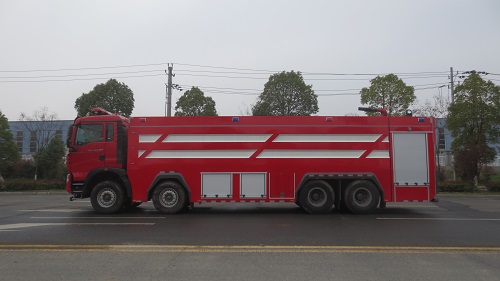 豪沃24噸水罐消防車采用重汽豪沃底盤改裝,平頭排半駕駛室,液壓翻轉(zhuǎn),整車結(jié)構(gòu)緊湊,方便靈活,動力性能好,車速高,能自由進出鄉(xiāng)村狹窄道路及小區(qū),具有消防車的全套消防功能,上裝箱體的上裝骨架全部采用引進歐洲技術(shù)生產(chǎn)的鋁合金型材制造,整車的重量減少,機動性能和整車載重量提高。除了裝備消防水泵及器材以外,還設(shè)有較大容量的貯水罐及水槍、水炮等?蓪⑺拖廊藛T輸送至火場獨立進行撲救火災(zāi)。也可以從水源吸水直接進行撲救,或向其他消防車和滅火噴射裝置供水。在缺水地區(qū)也可作供水、輸水用車,主要適用于大中城鎮(zhèn)、鄉(xiāng)村狹窄街道、城市小區(qū)、繁忙的批發(fā)市場等場所的一般物質(zhì)滅火,閑暇時可用于園林噴灌、道路清灑。