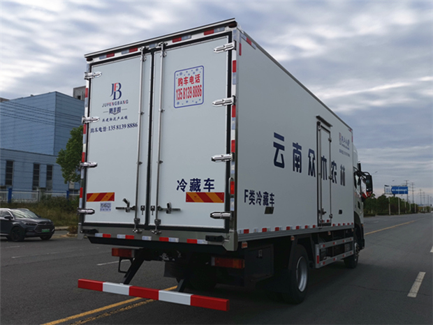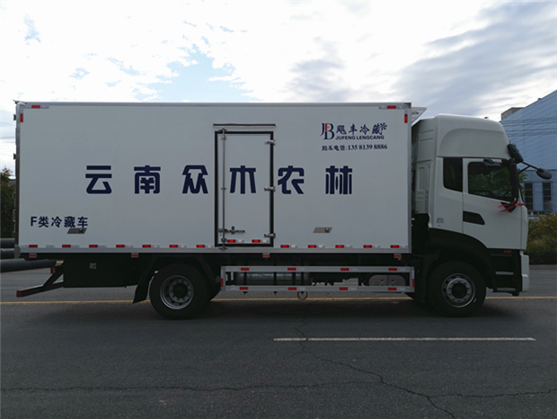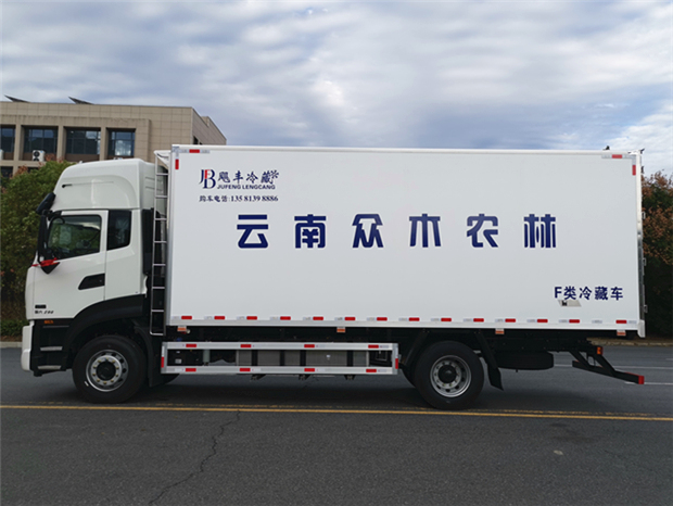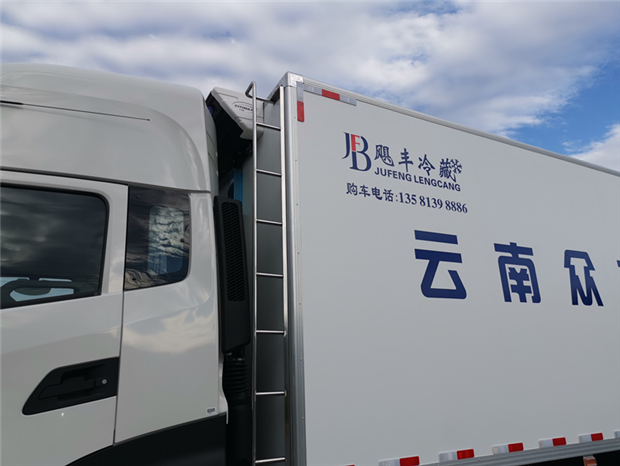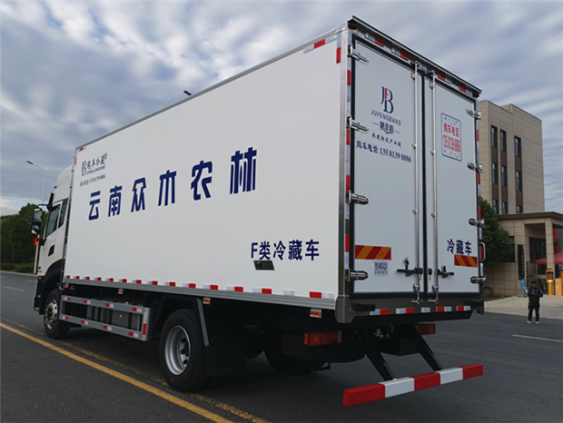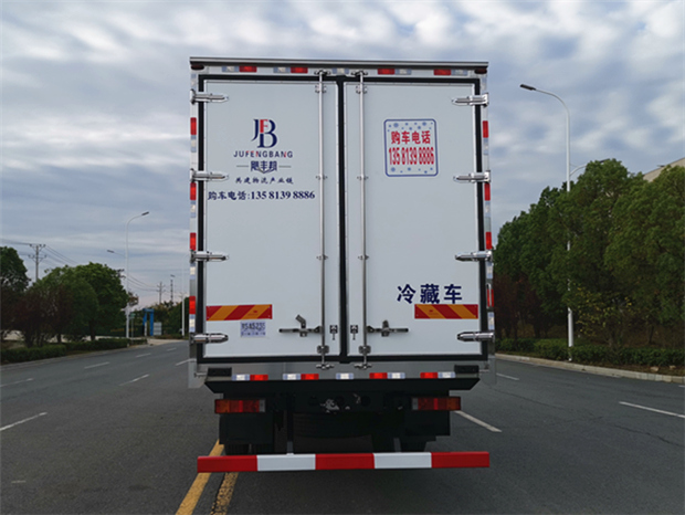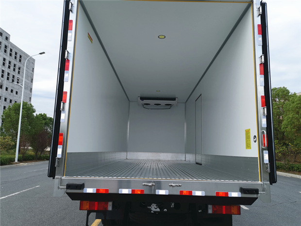 車廂配置為:《斷橋隔溫工藝、整體結(jié)構(gòu)框架》;內(nèi)外面料為3mm新款玻璃鋼;側(cè)板+頂板:全密封雙組合聚氨酯膠粘連;廂體厚度為8cm;頂板10cm厚,底板12cm厚,最新款鋁合金包邊型材;型材局部厚度為4mm(鋼制鉚釘加固);廂體內(nèi)部采用2個LED照明燈及廂體示寬燈;后門框為3mm厚不銹鋼材質(zhì);門框密封條為三元乙丙橡膠材質(zhì);加厚型不銹鋼合頁及鎖件;副梁為Q700車用大梁鋼;15mm厚大梁墊皮;加裝防撞膠塊;不銹鋼門鎖件,配后雙開門。底板為加厚鋁合金通風槽滿焊,帶30cm高新型圍裙,副駕駛一側(cè)居中靠前開單側(cè)門,鋁合金側(cè)防護,不銹鋼冷機維護爬梯,帶大工具箱一個。帶剎車淋水器,前后淋水分別控制。